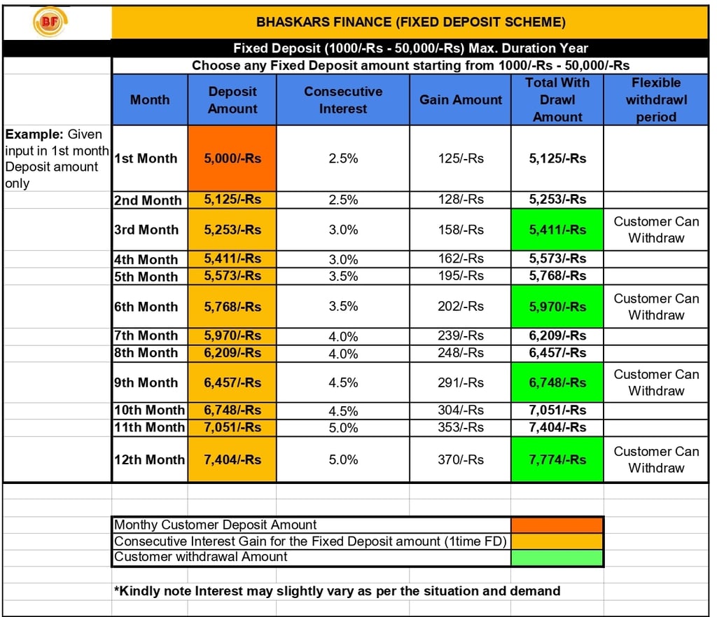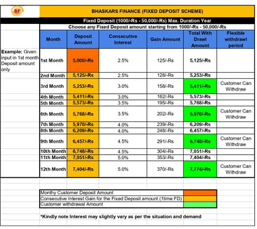 FIXED DEPOSIT (FD)SCHEME EXAMPLE BELOW